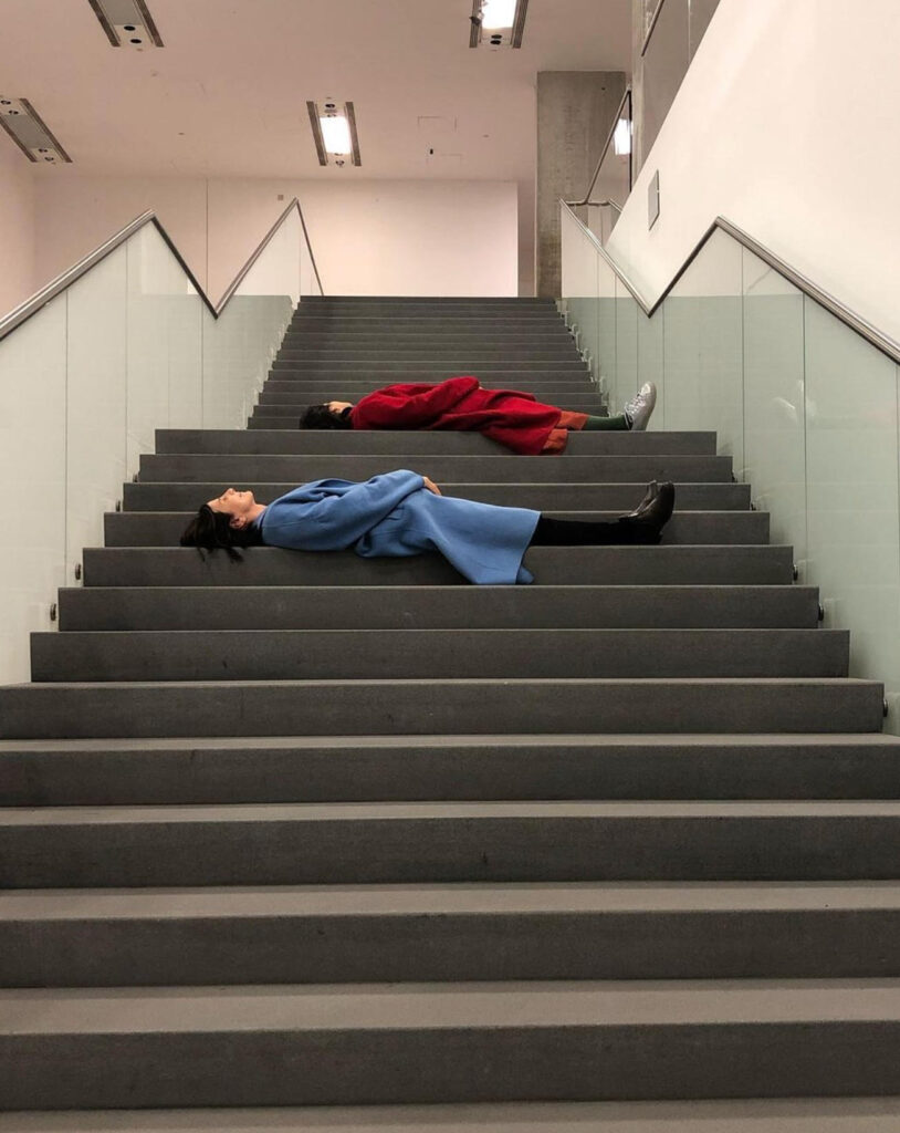 The theme of strangers, movement boundaries, the sense of presence, and the boundaries between artists and the audience play a crucial role in the "Emergency Exit" project. Simultaneously, the project emphasizes the importance of the artists' long-term commitment to maintaining the work's sustainability to keep the artwork relevant and functional over time. This concept of "maintenance" is related to post-medial hybridity, digital presence, and the idea of sustainability of contemporary art. Through all these themes, the "Emergency Exit" project represents a contemporary response to classical artistic concepts, exploring them through a unique combination of performance, video, and artwork maintenance, while shedding light on current social and political issues signaled by the Biennale's theme, "Strangers Everywhere."