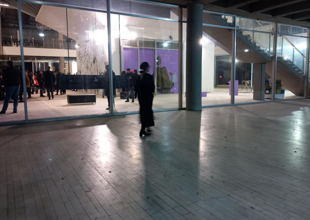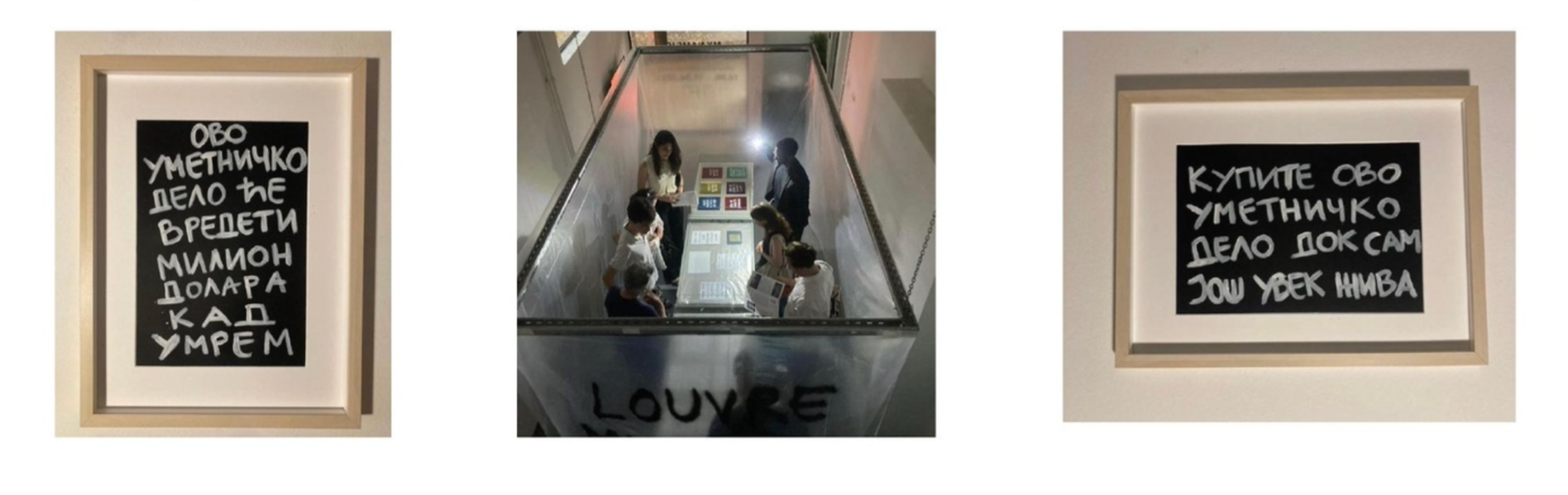 The vision of the Serbian Pavilion for the 2024 Venice Biennale insists on breaking free from traditional exhibition concepts. The collective body emerging from collaboration on this work proposes an arrangement that aims to create a dynamic field of aesthetic and emotional interaction instead of the classic representative container for artworks. The "Emergency Exit" project represents a multidisciplinary artwork that deals with themes of freedom of movement, presence, boundaries between artists and the audience, sustainability, and transparency. Three artists, inspired by the works of Marcel Duchamp and Anne Imhof, create this work as a response to contemporary social and political challenges. The main idea of the project is to explore the concept of "strangers everywhere," illustrating how we feel like strangers in our own lives due to movement restrictions. Through a combination of performance, video, and installation, the artists create a symbolic collective body compelled to move and confront walls. Inspired by Marcel Duchamp's work, the artists use glass as a key material in their work. Glass is used as a symbol of boundaries and barriers but also as a material that creates transparency and layered visual experiences. The project relies on Duchamp's idea that cracks in glass can be part of artistic expression.