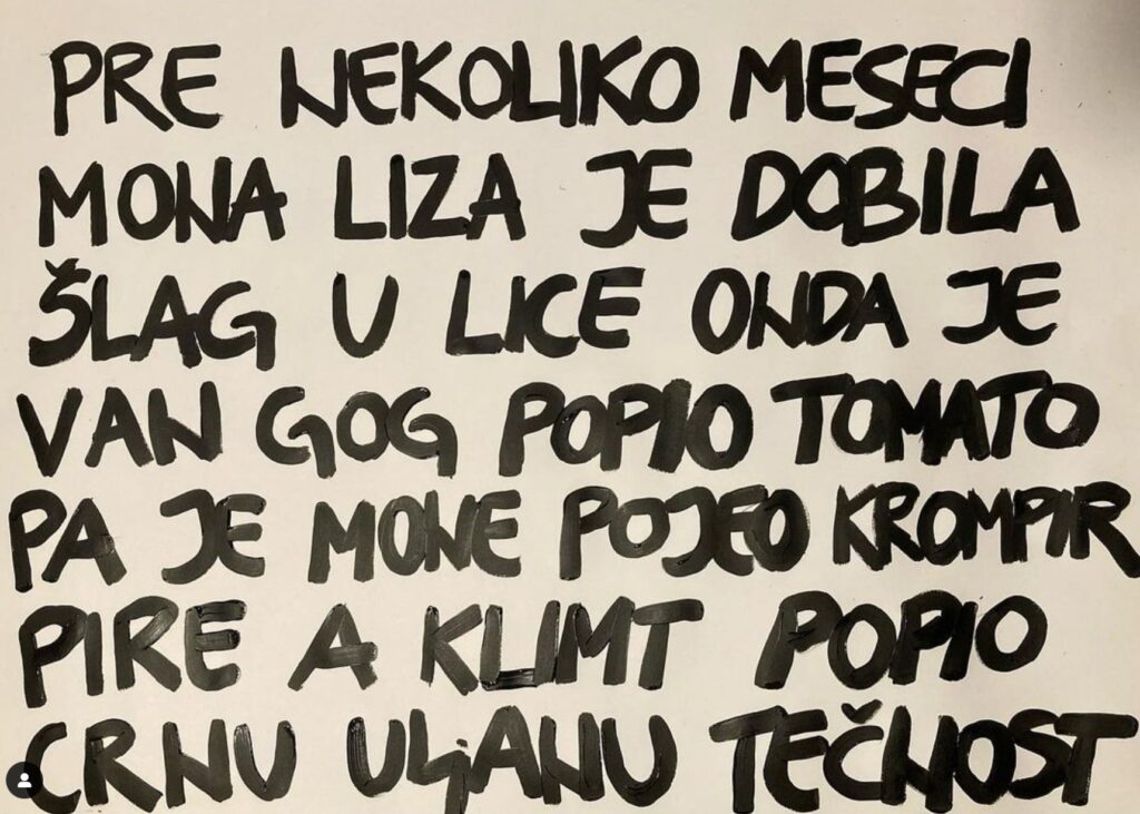 Breaking glass symbolizes the disruption of existing barriers and the opening of space for change and a new beginning. It can draw attention to injustice and call for action or change. On the other hand, the call for revolt expresses dissatisfaction and protest against injustices, using art as a means of expressing these feelings and demanding a better world.